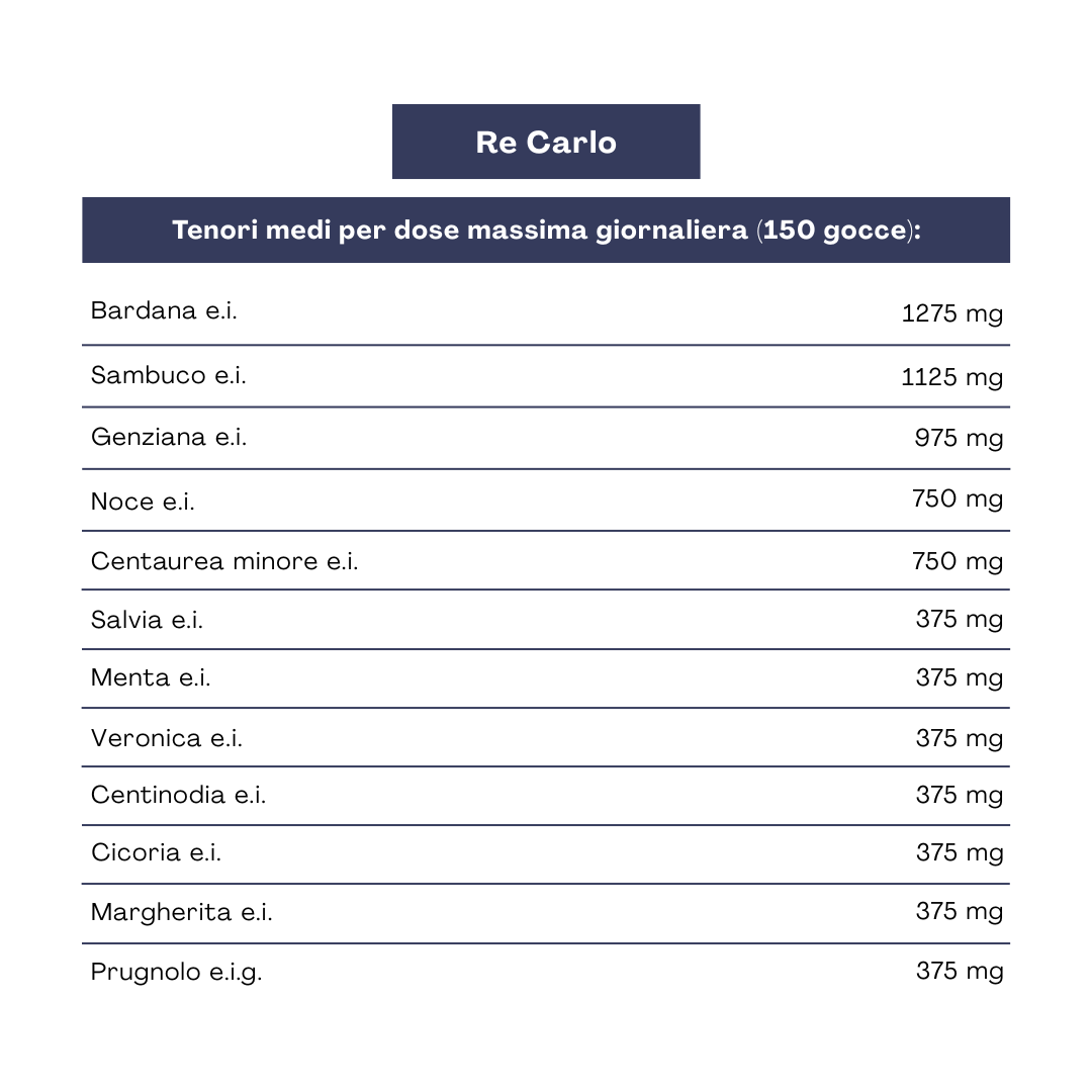 Re Carlo non agisce su un singolo organo, ma grazie alla presenza sinergica di 12 estratti vegetali orchestra un'azione di pulizia sistemica e coordinata. È la scelta ideale per iniziare un percorso di benessere, durante i cambi di stagione o quando il corpo inizia a inviare segnali di sovraccarico. È il primo passo per sentirsi più leggeri, energici e puliti, dall'interno verso l'esterno.