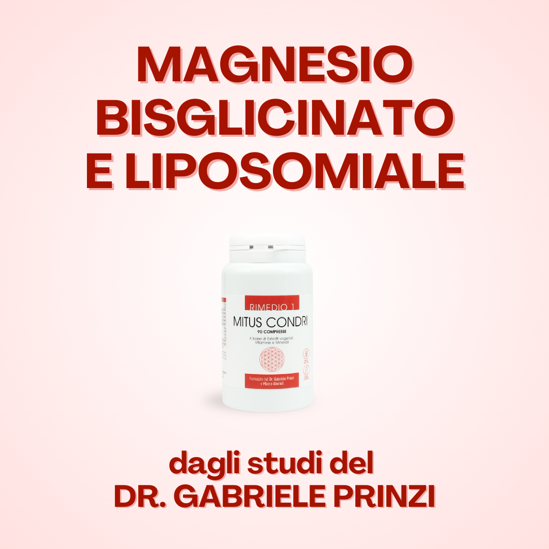 MITUS CONDRI è un integratore di magnesio potenziato, formulato sulla base degli studi del Dr. Gabriele Prinzi, con magnesio bisglicinato e magnesio microincapsulato liposomiale e vitamine B in forma attiva e metilata.