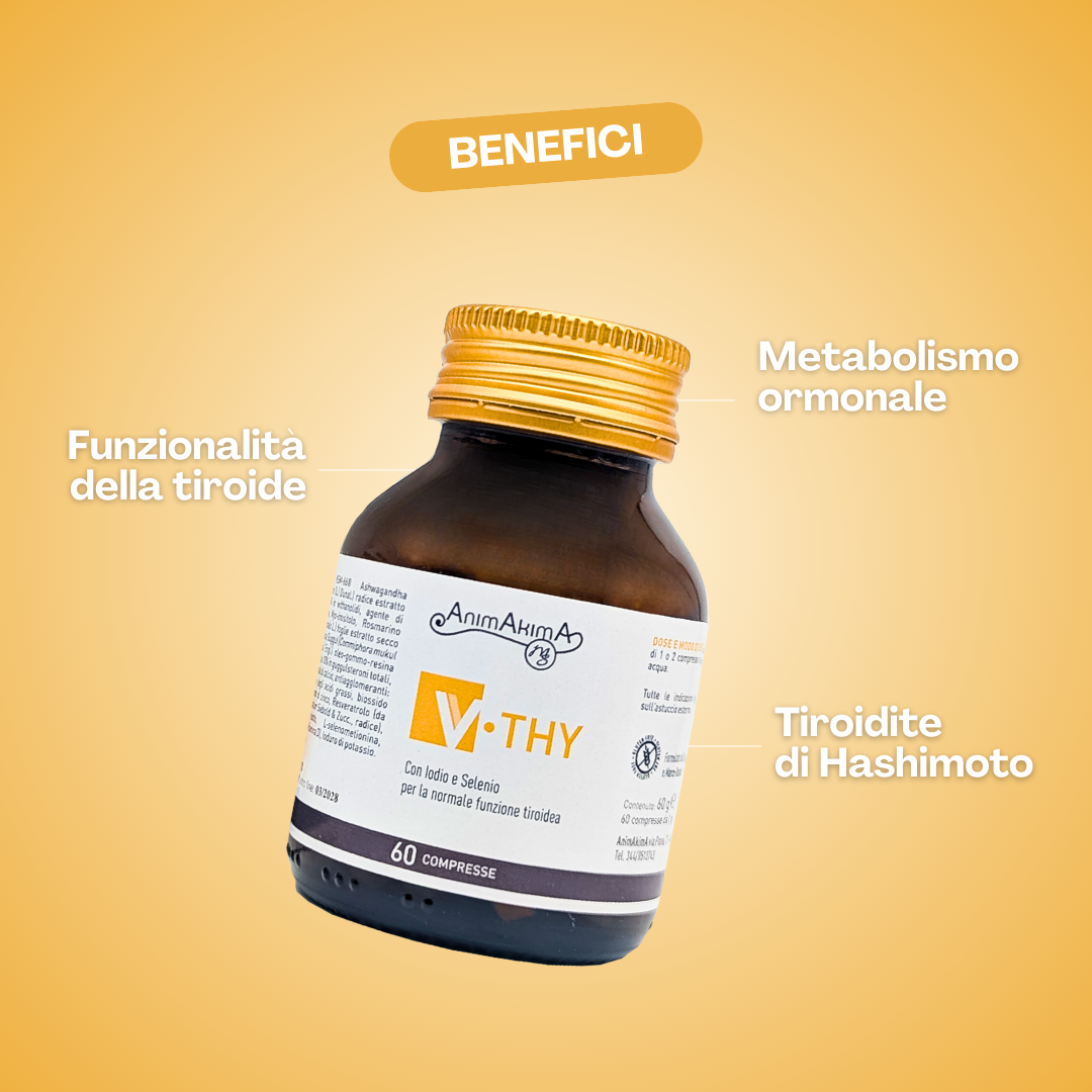 V-THY è una formula completa per il supporto della tiroide, studiata per migliorare la produzione ormonale, ridurre l’infiammazione e contrastare lo stress ossidativo. Ideale per chi soffre di ipotiroidismo, tiroidite autoimmune o vuole ottimizzare il metabolismo tiroideo.